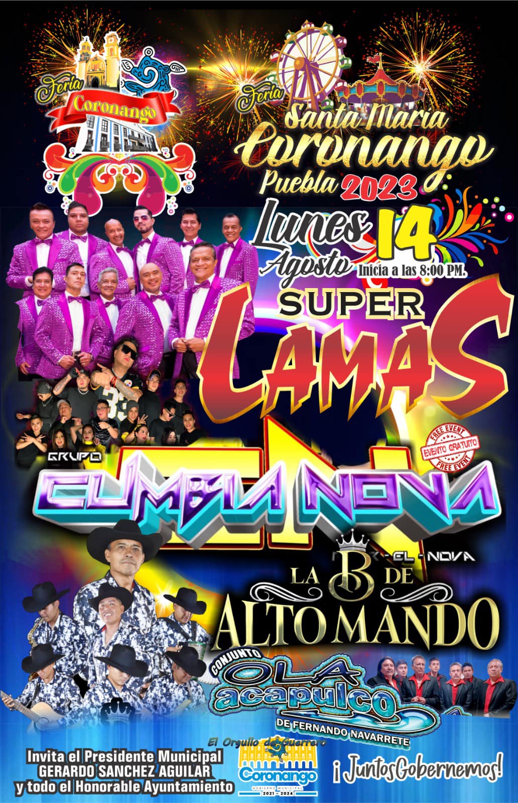 La Feria Coronango es uno de los eventos más destacados de la región, y este año no será la excepción. El 14 de agosto, los asistentes podrán disfrutar de un espectáculo en vivo que pondrá a bailar y cantar a todos los presentes. Super Lamas, con su estilo contagioso y su repertorio de éxitos, hará vibrar el escenario con su energía y carisma.